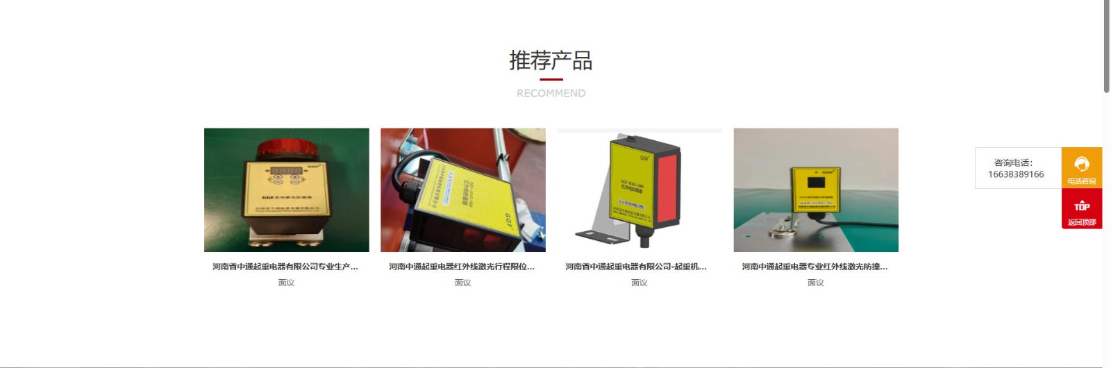 河南省中通起重电器有限公司16638389166-河南中通起重机电器红外线激光防撞器防撞仪-河南中通起重电器河南省中通起重电器有限公司成立于2017年,注册地位于长垣南蒲区国际万商城。经营范围包括成套电器柜、超声波限位开关、遥控器、超载限制器、滑触线指示灯、声光报警器、风速仪开关、激光行程限位开关、红外线行程开关的制造与销售 河南省中通起重电器有限公司专业生产河南中通起重电器红外线开关Henan Zhongtong Crane Electrical Appliance Co., Ltd. was established in 2017, with its registered address at the International Wanshang Mall in Nanpu District, Changyuan. The business scope includes the manufacturing and sales of complete sets of electrical cabinets, ultrasonic limit switches, remote controllers, overload limiters, sliding contact line indicator …
